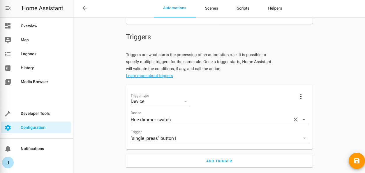 Clicking on one will drop you in to the automation editor with a trigger pre-filled in. If your device supports it you will be able to choose between types of event - like a short press or a long press.