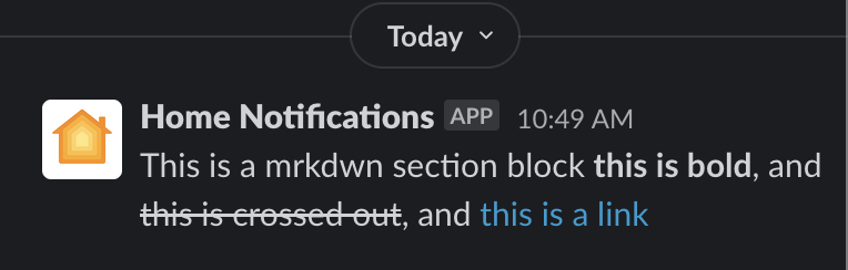 This is a mrkdwn section block *this is bold*, and ~this is
