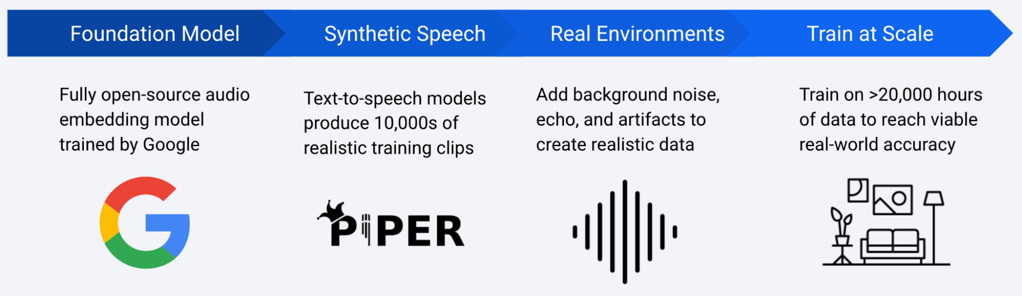 openWakeWord is built around an open source audio embedding model trained by Google and fine-tuned using the text-to-speech system Piper