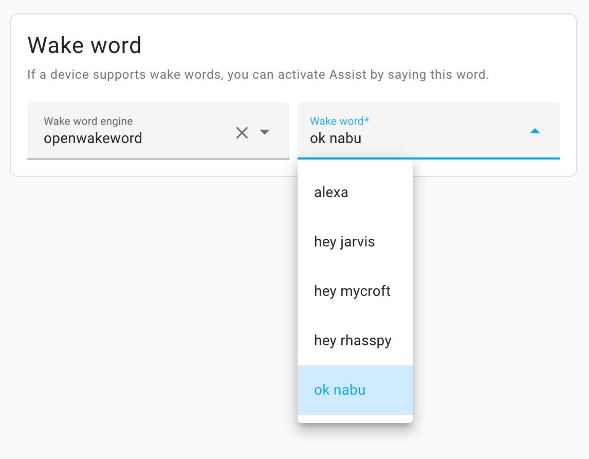 Users can pick per configured voice assistant what wake word to listen for