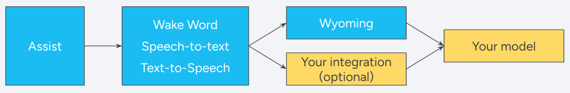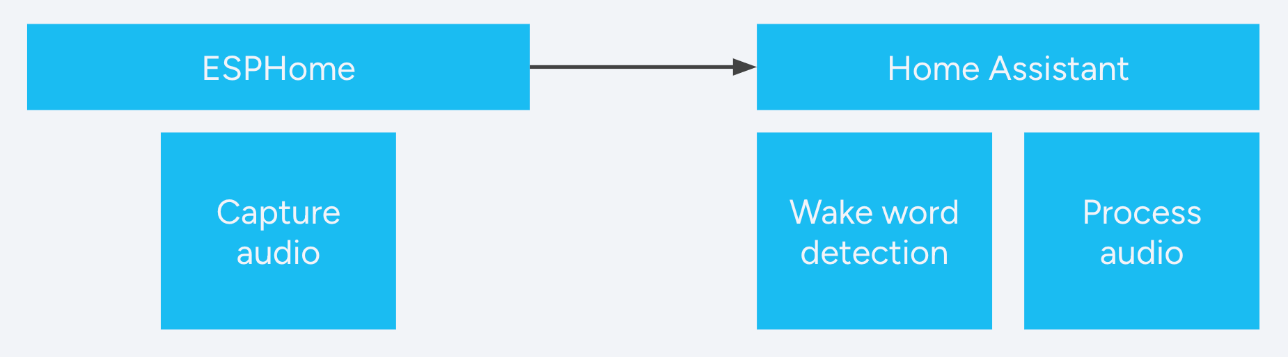 To avoid being limited to specific hardware, the wake word detection is done inside Home Assistant. Voice satellite devices constantly sample current audio in your room for voice. When it detects voice, the satellite sends audio to Home Assistant where it checks if the wake word was said and handle the command that followed it.