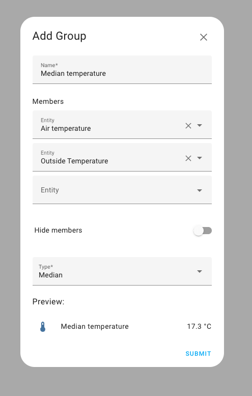 When setting up a helper, sometimes it can be useful to see how the entity that you are creating looks while you are setting it up. That’s why we added a preview when you create or change a group helper.