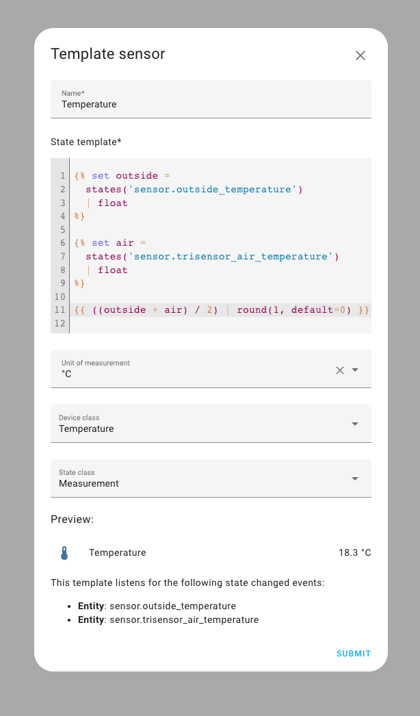 We also added preview support to another helper that finally made its way into the UI, the template sensor.