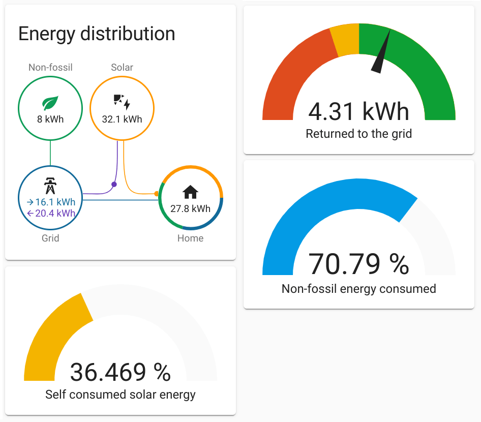 Every home is different and so are the needs of individual users. The energy management feature in Home Assistant is created with existing Home Assistant building blocks: Lovelace & Data storage. This means that our advanced users can choose to build up their own dashboards and use the pieces from the energy dashboard that they like.