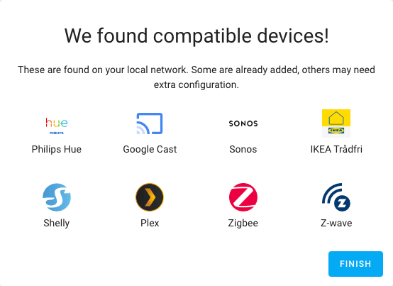Home Assistant will automatically start detecting your smart home devices.