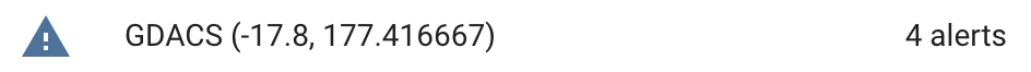 | event type | Type of event this alert is for (Drought, Earthquake, Flood, Tropical Cyclone, Tsunami, Volcano). |
