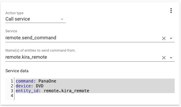 You now need to edit kira_codes.yaml to make sure it contains the codes you want the Kira to blast out as a remote or respond to as a sensor. Note that each time you edit and save the kira_codes.yaml file you need to restart Home Assistant for the changes to take effect, reloading the automations alone is not sufficient.