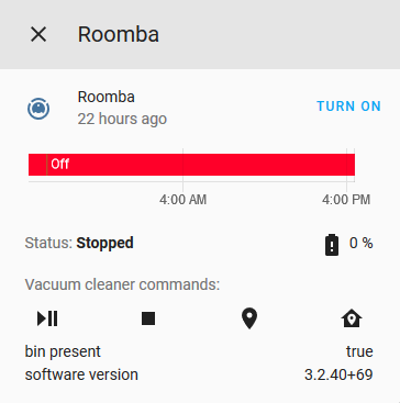 The Roomba integrationsIntegrations connect and integrate Home Assistant with your devices, services, and more. [Learn more] allows you to control your iRobot Roomba vacuum or iRobot Braava m-series mop.