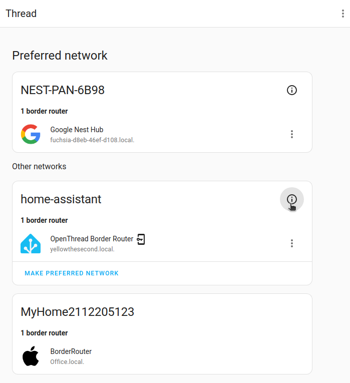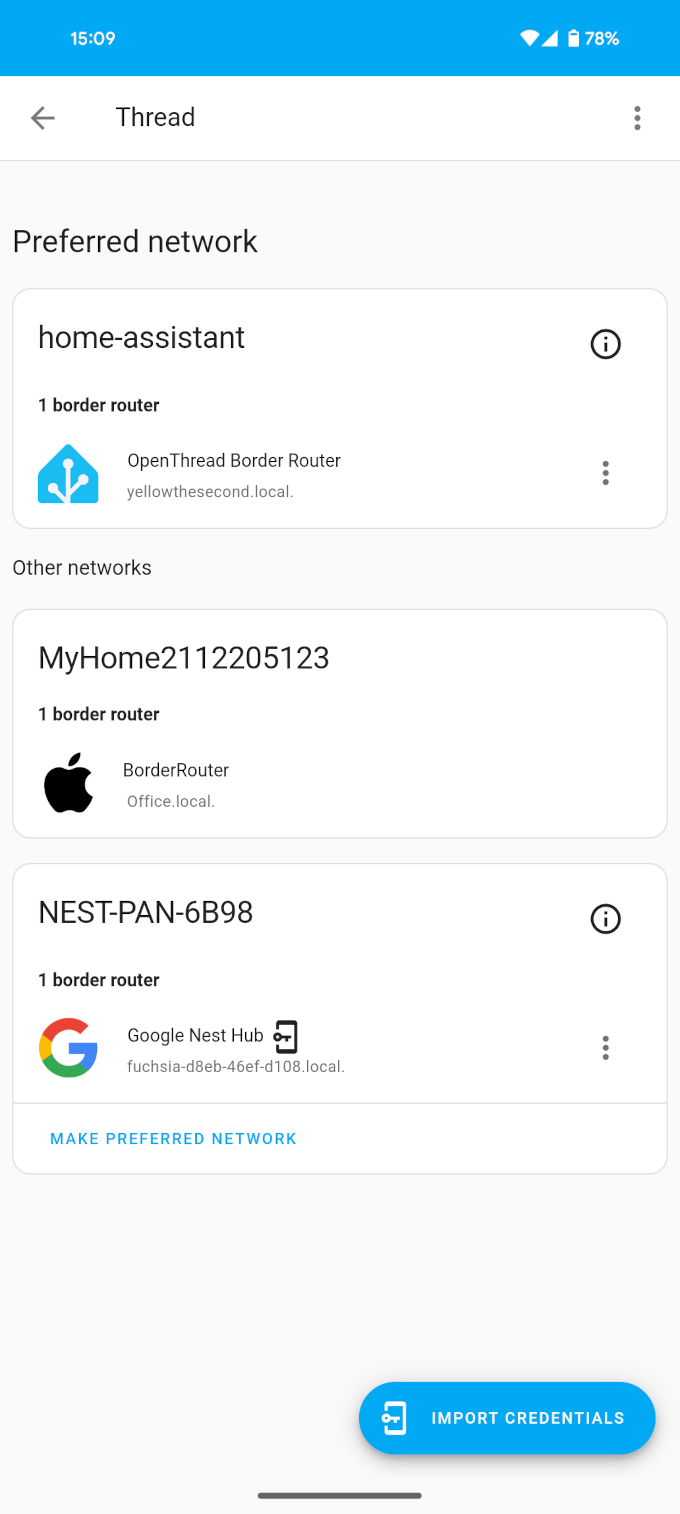 • Importing the credentials allows a Google- or Apple-created Thread network to be the preferred network of Home Assistant.