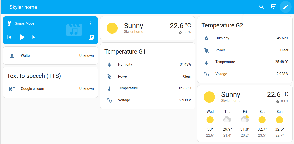 The temperature sensors are shown because the Home Assistant device used here (Raspberry Pi) has a built-in Bluetooth module. In Giulia’s home, there were 2 Bluetooth temperature sensors present. If your Home Assistant does not have a Bluetooth module (yet), Bluetooth devices in your home won’t be shown automatically.