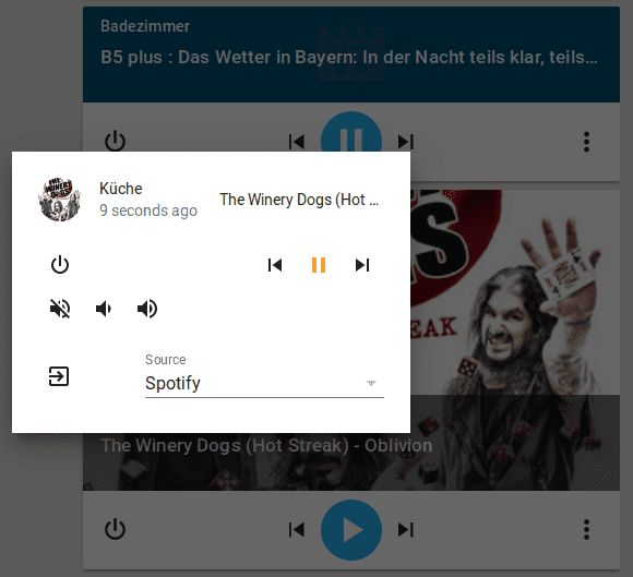 Overview DAB+ (Badezimmer) and Spotify (Küche):