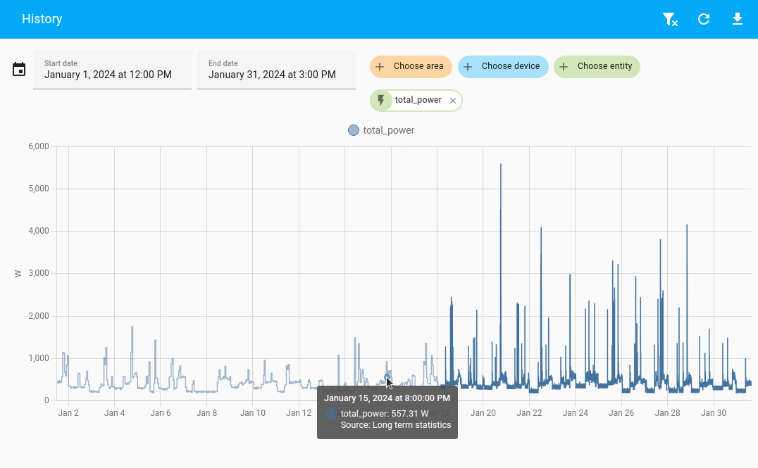 If the chosen time frame exceeds the retention period defined in the recorder, the long term statistics table is used as a data source.